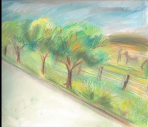 Today I drove through my neighborhood to run an errand, I pass this place a lot, but today I took notice of how the trees and landscape looked against the cool grey sky. I made a mental image and came home to do a quick pastel sketch of what I remembered.