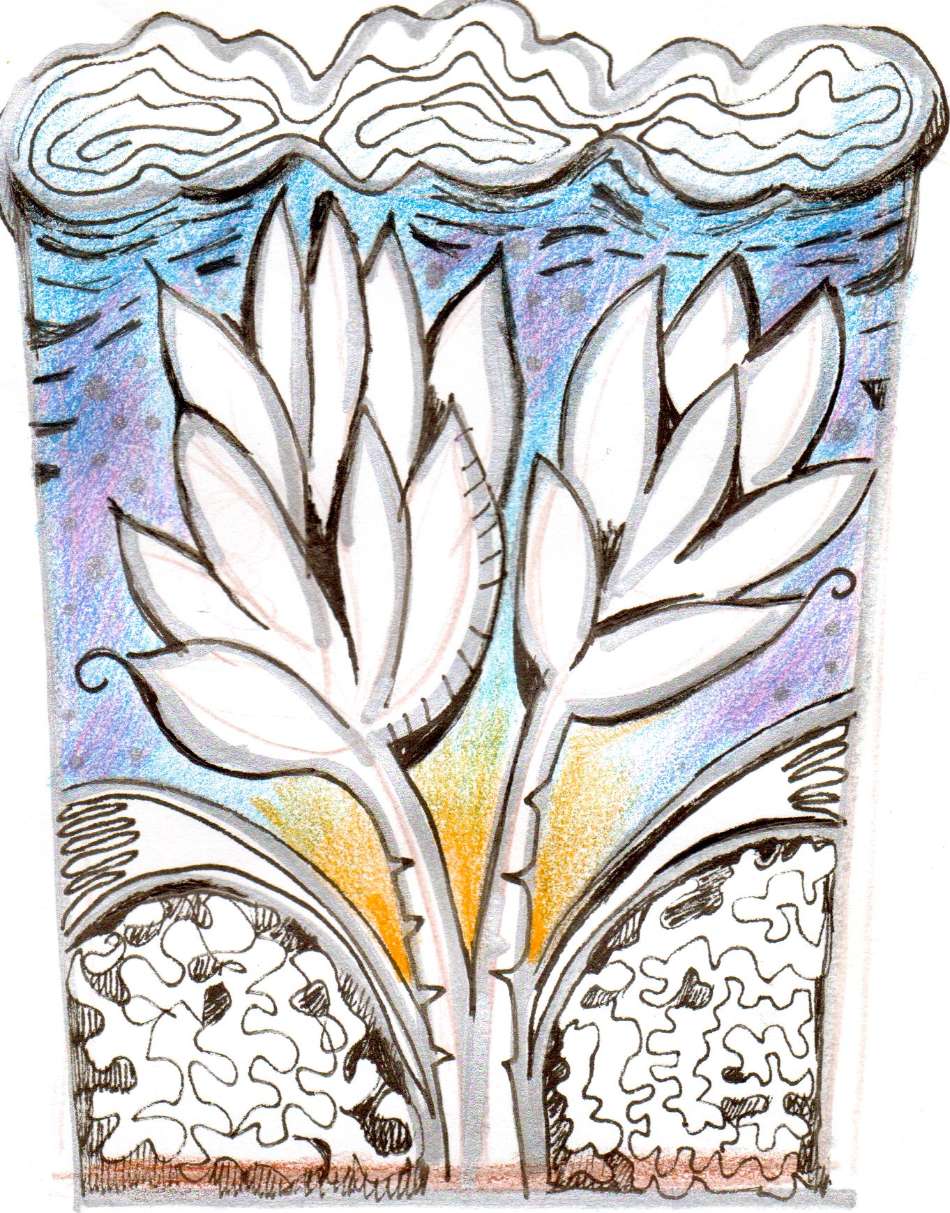 (tall grass tall trees. 5×7″ painting on paper: watercolor, acrylic paint on 140 lb coldpress paper)