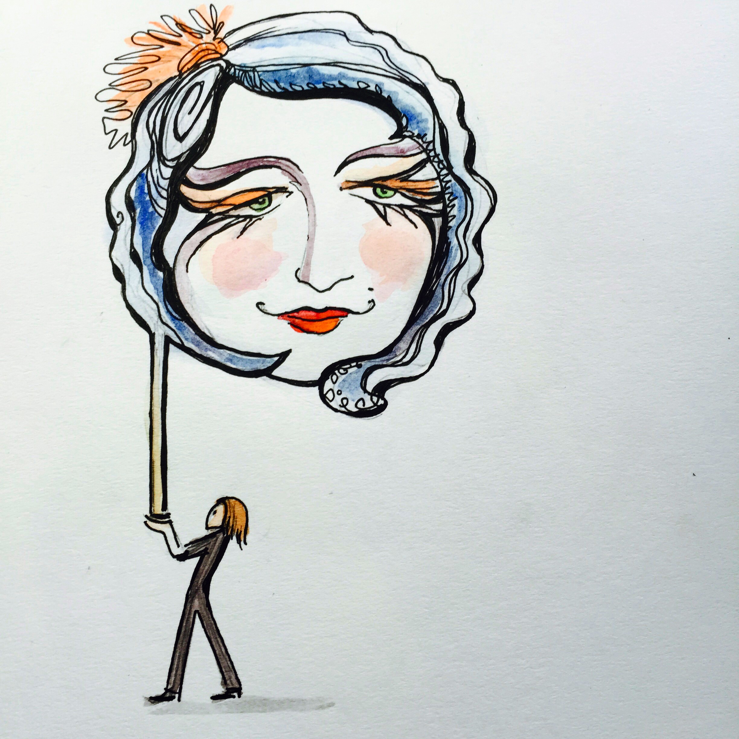Placed decorative paper on the cardboard, after playing with the placement of the art I adhered the pieces to the board. Washes of paint were added to the background and I coated everything with clear matte mod podge to seal it. The final result.